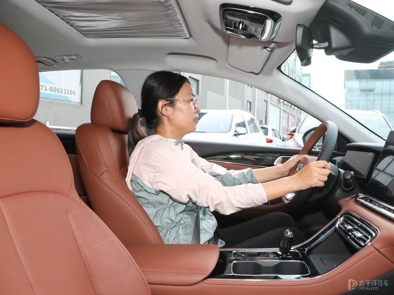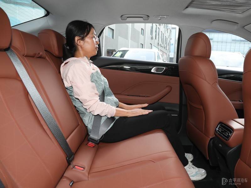 前排座椅的包裹性和承托性都表现不错,选用的皮质够软,坐在上面非常舒服,腰部也有不错的支撑,主驾座椅带电动调节。前排头部空间很充裕,头部还有近两拳的空间。