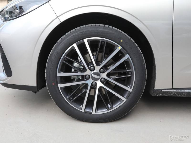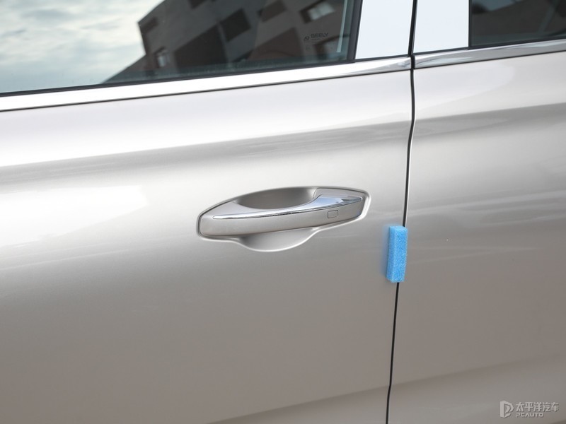 第5代帝豪采用非常好用的传统机械式门把手,配备了18寸双五辐式轮毂。上下腰线的点缀让侧面不会过于单调,滑溜的D柱线条也让侧面更加具有流线感。